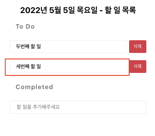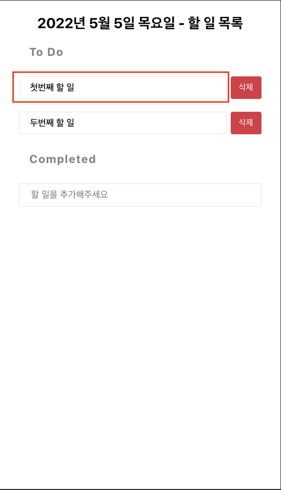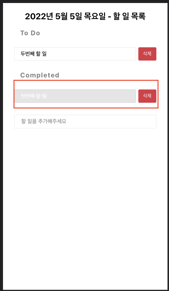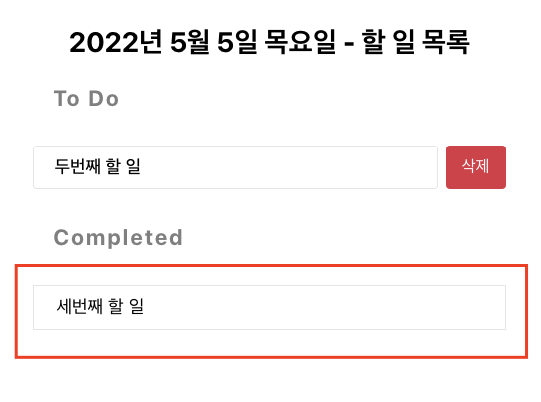 정상적으로 할 일에서 완료로 전환되는것을 확인할 수 있습니다.