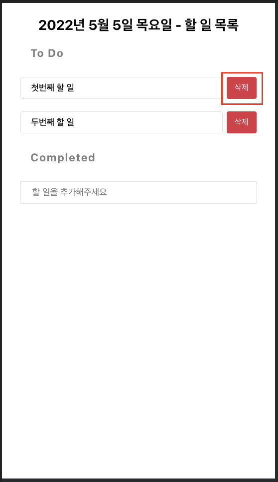 코드를 다 입력 했다면 프로젝트에서 할 일 중 하나의 할 일을 삭제해 볼까요?