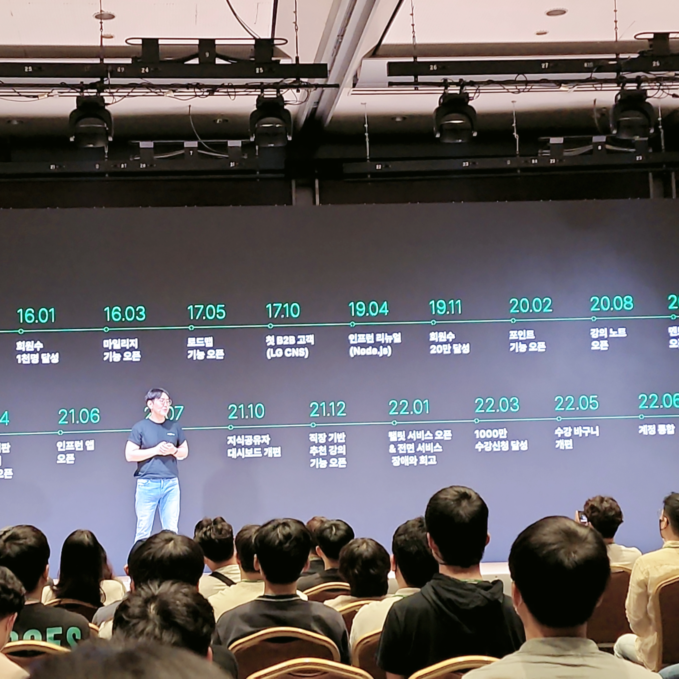 15분 정도의 세션이었지만, 인프런이 어떻게 애자일 하고 있는지에 알 수 있던 세션이었습니다. 다만, 좀 늦게 참여하였기에 초반 내용을 잘 못들었지만, 인프런의 채용 서비스인 랠릿을 개발할 때 어떻게 애자일을 하고 있고, 기존의 QA만 들어가면 늘어나던 이슈를 데일리스크럼 및 개발자 테스트를 통해서 QA에서 발생하는 이슈 갯수를 줄일수 있었던 경험을 소개하는 좋은 세션이었습니다.