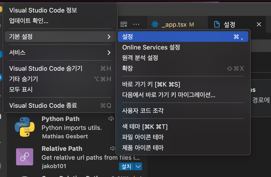 VSCode 설정으로 들어 간 후