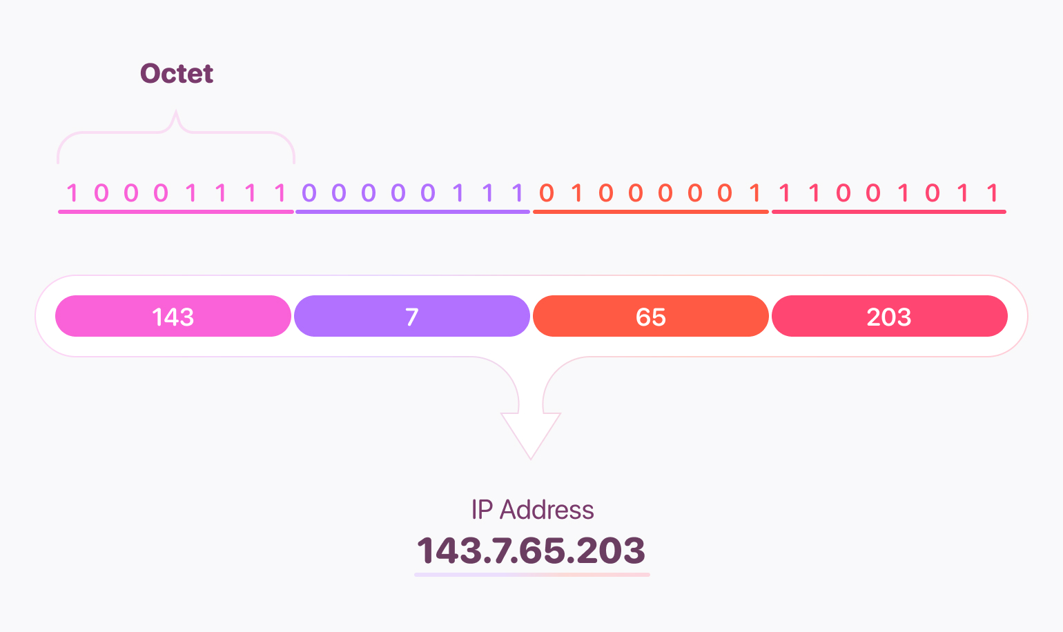 옥텟이란, IP주소를 이진법으로 변환하여 8개씩 나눈 비트 단위를 옥텟이라고 합니다.