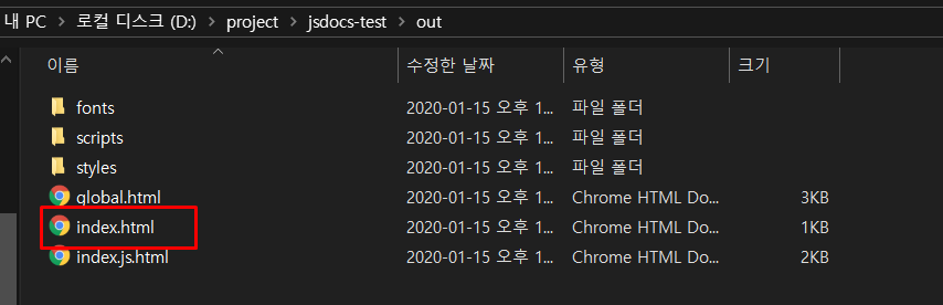 그럼 이제 JSDoc을 실행시켜보도록 하겠습니다.
