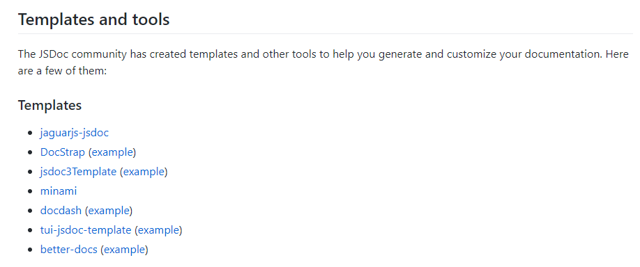 JSDoc - Github에서도 템플릿들을 지원하고 있습니다.