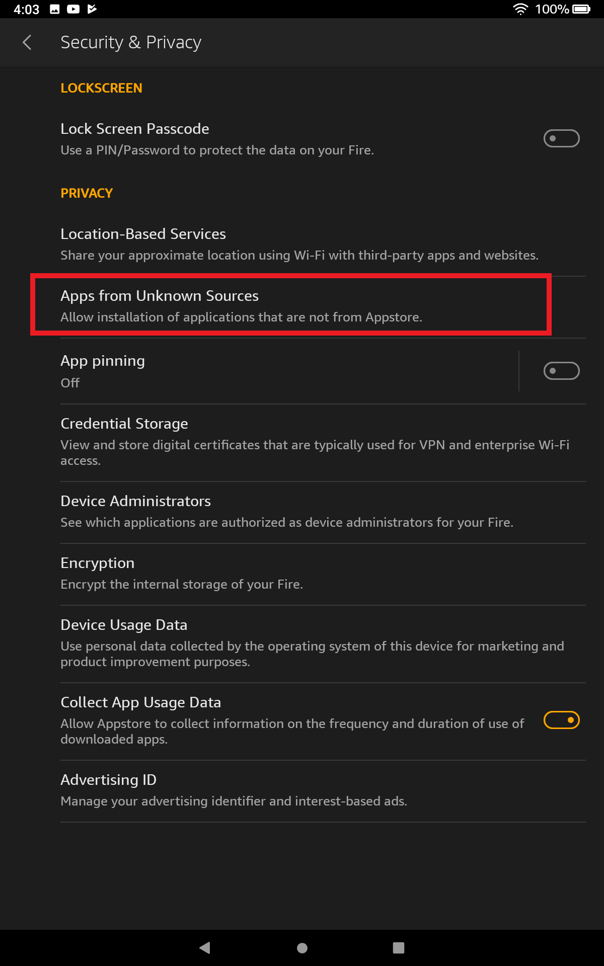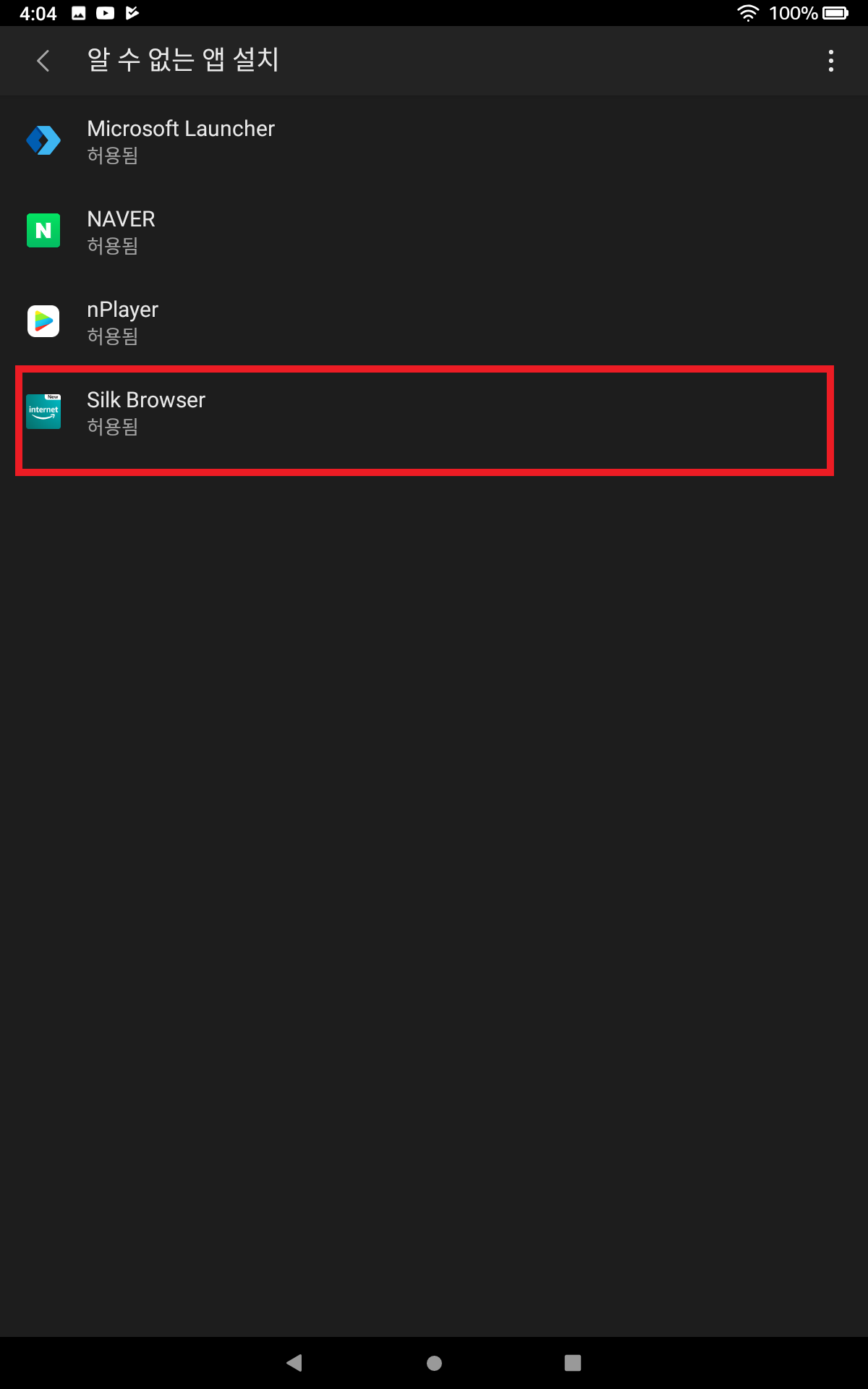 그런 다음 App from Unknown Source 항목에 들어간 후