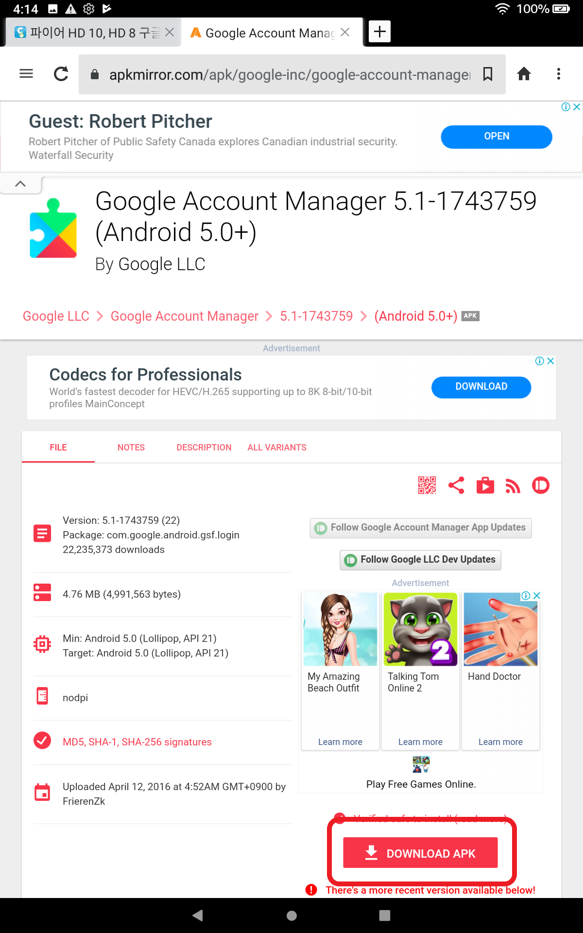 2020/03/01 - [리뷰 및 사용 TIP] - 아마존 파이어 HD 10(AMAZON FIRE HD 10) 9세대 루팅없이 구글 플레이 스토어(Google Play Store) 설치하기