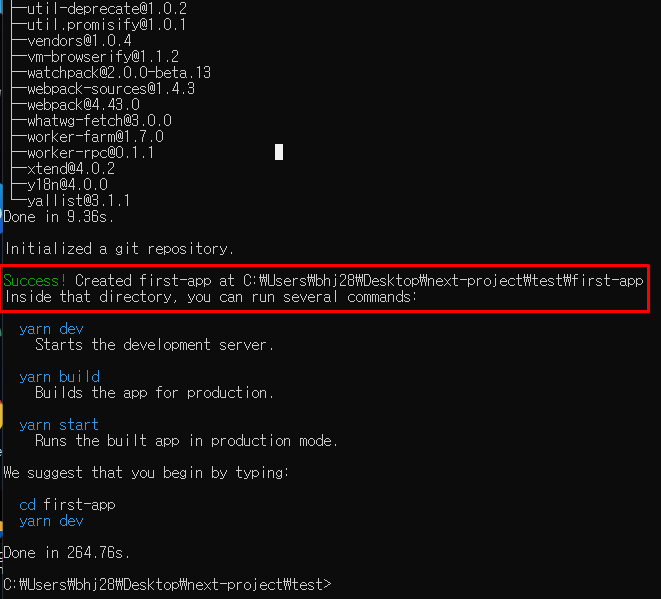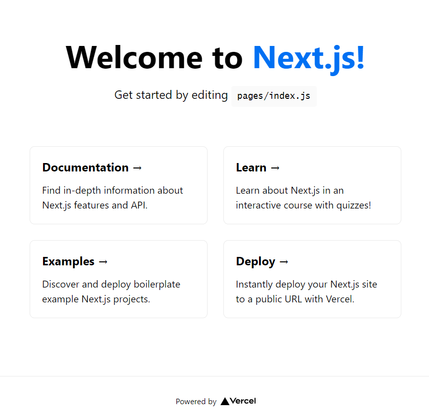 축하합니다 기본 NEXT 프로젝트 생성을 완료 했습니다.