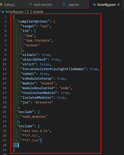 먼저 next가 추천하는 tsconfig 세팅을 사용하기 위해, 프로젝트 루트 디렉토리에 next-env.d.ts 파일을 생성해 줍니다.