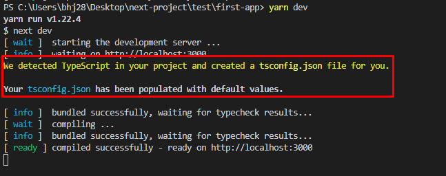 (만약 추천 세팅을 사용하기 싫다면 next-env.d.ts대신 tsconfig.json을 생성해 줍니다.)