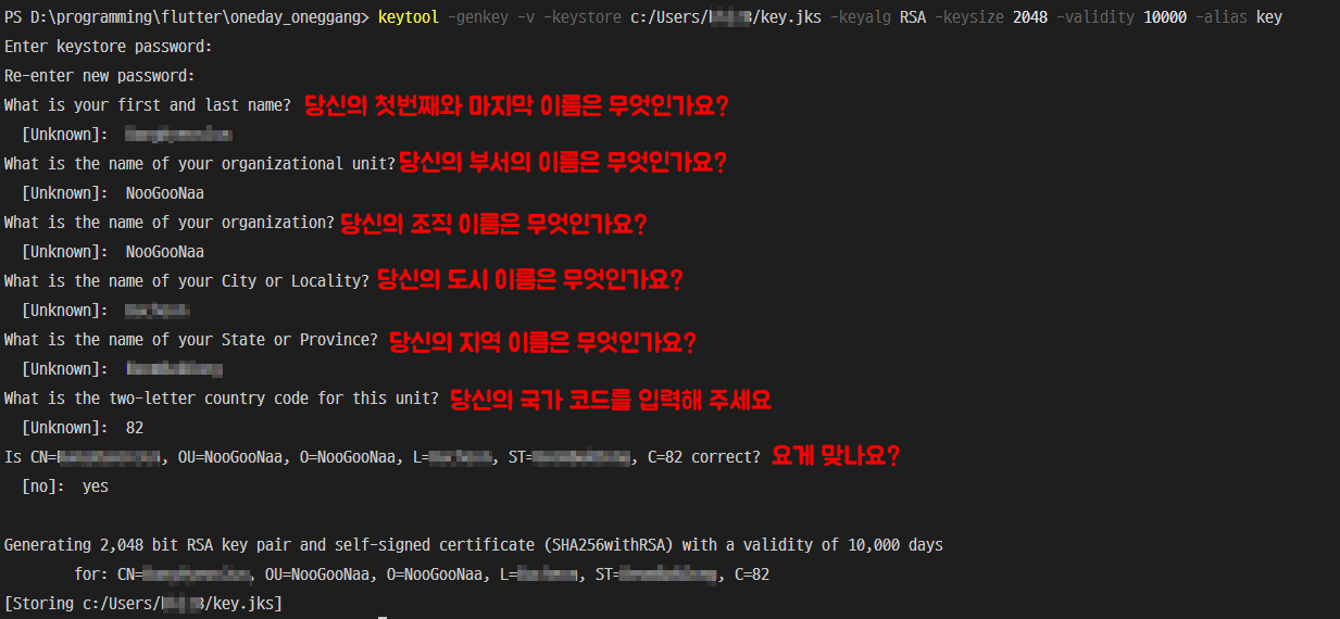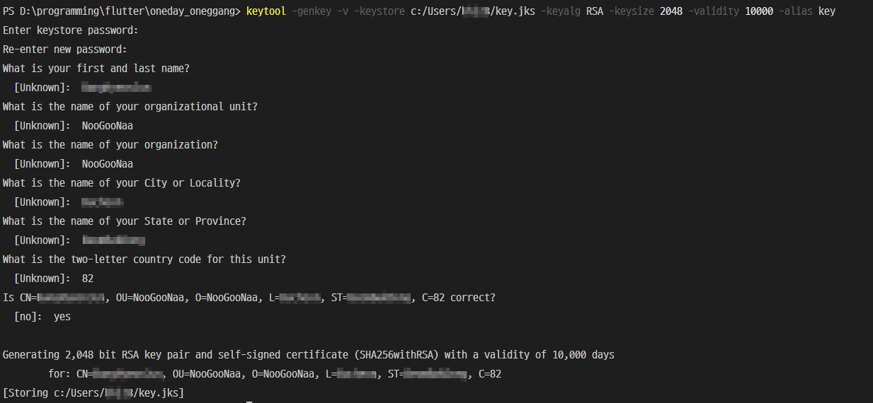 + keytool -genkey -v -keystore c:/Users/bhj28/key.jks -keyalg RSA -keys ...
