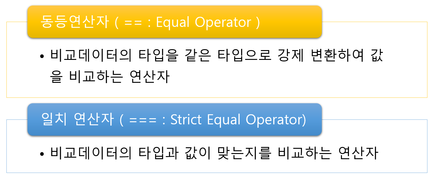 사실 실무에선 동등연산자보단 일치연산자를 많이 사용합니다.