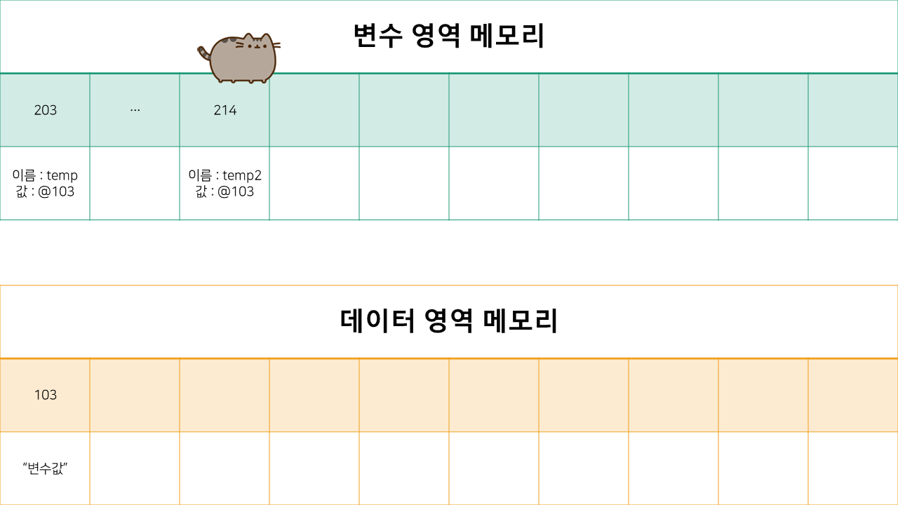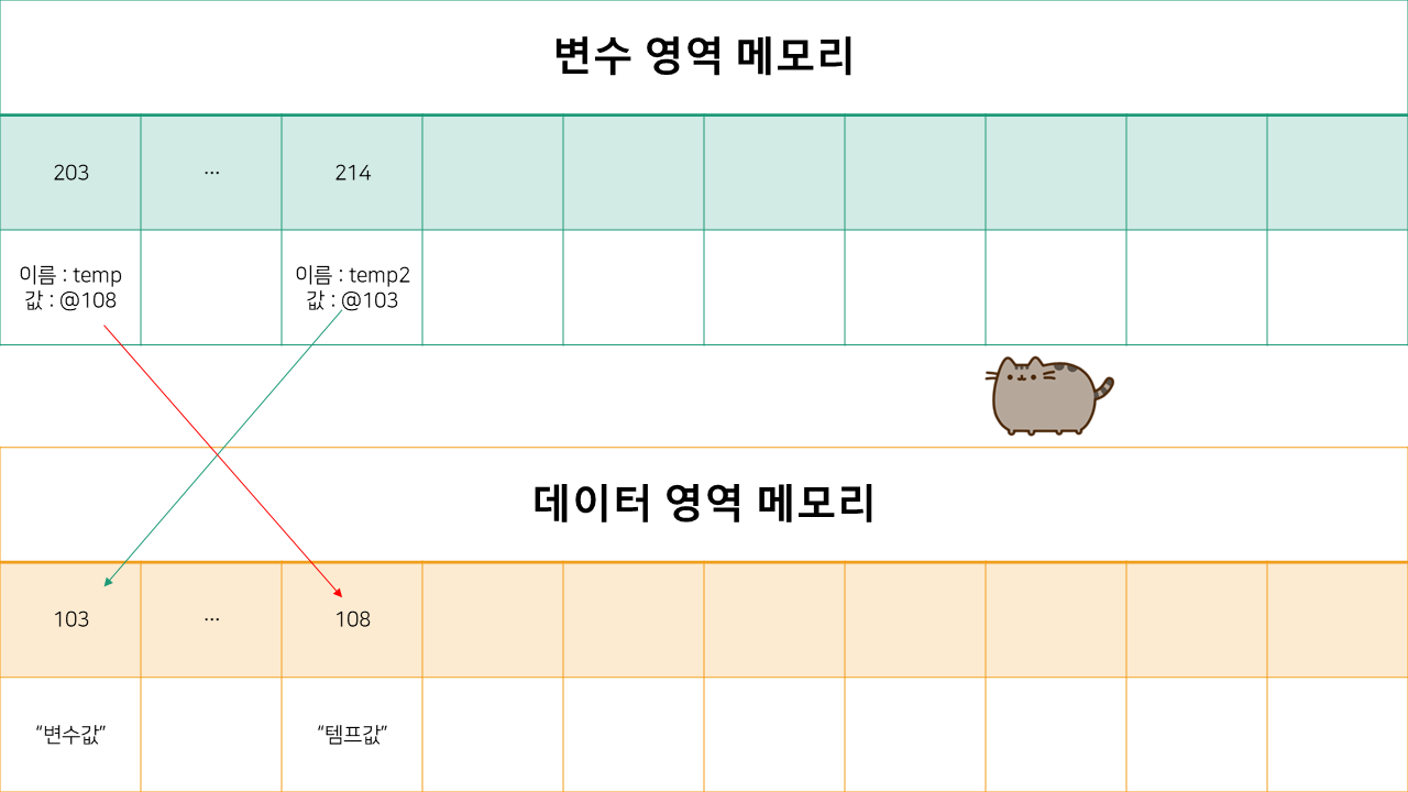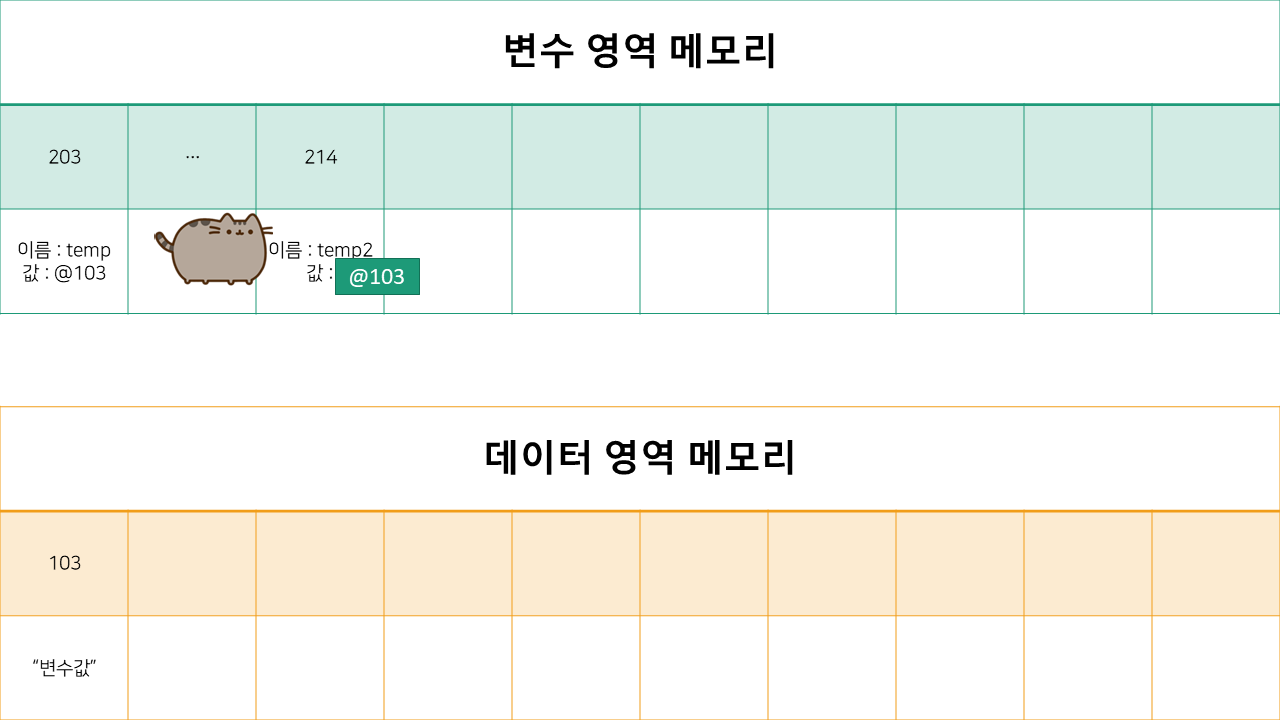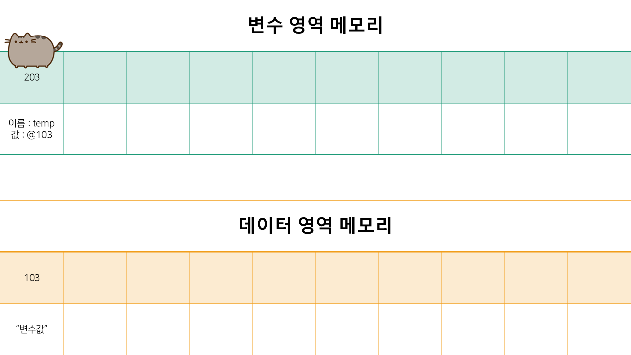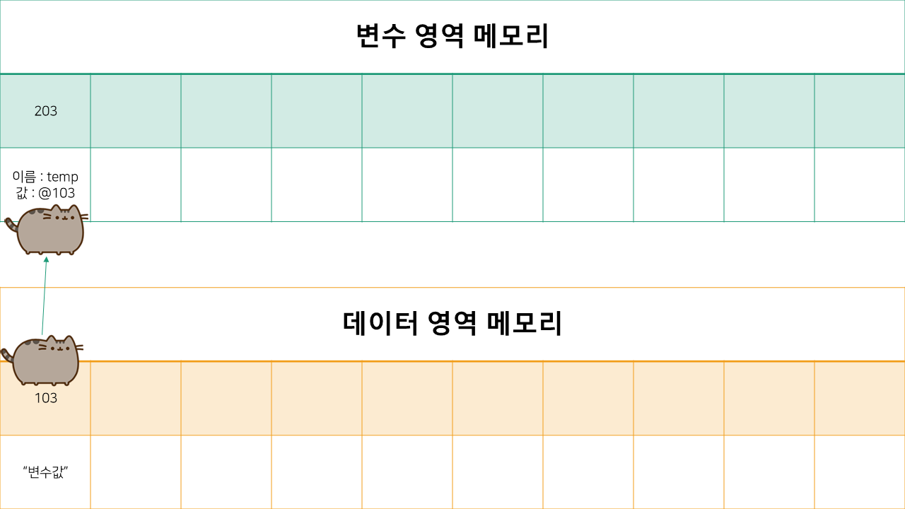 사실 데이터 영역 메모리 한 칸에 "변수값" 이라는 데이터를 넣어놨지만,