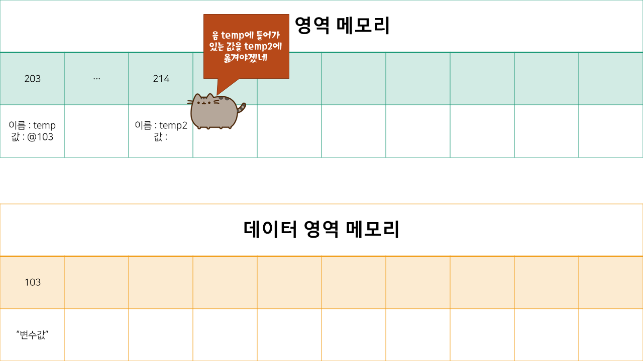 먼저 변수 영역 메모리에 temp2를 만들어 줍니다.