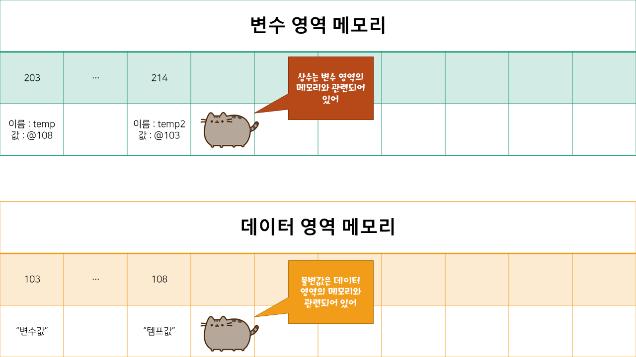 불변 값은 데이터 영역 메모리 값 변경 여부에 따릅니다.