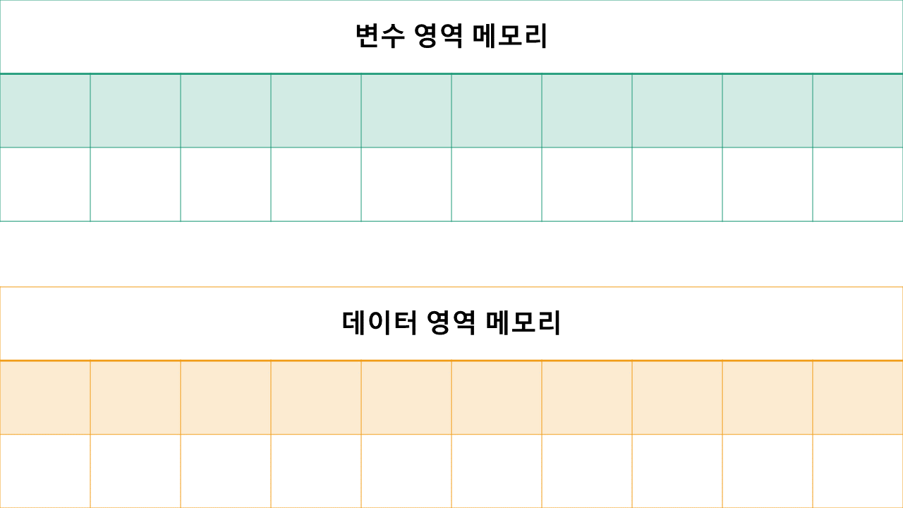 아래 그림과 같이 변수 영역 메모리와 데이터 영역 메모리가 존재합니다.