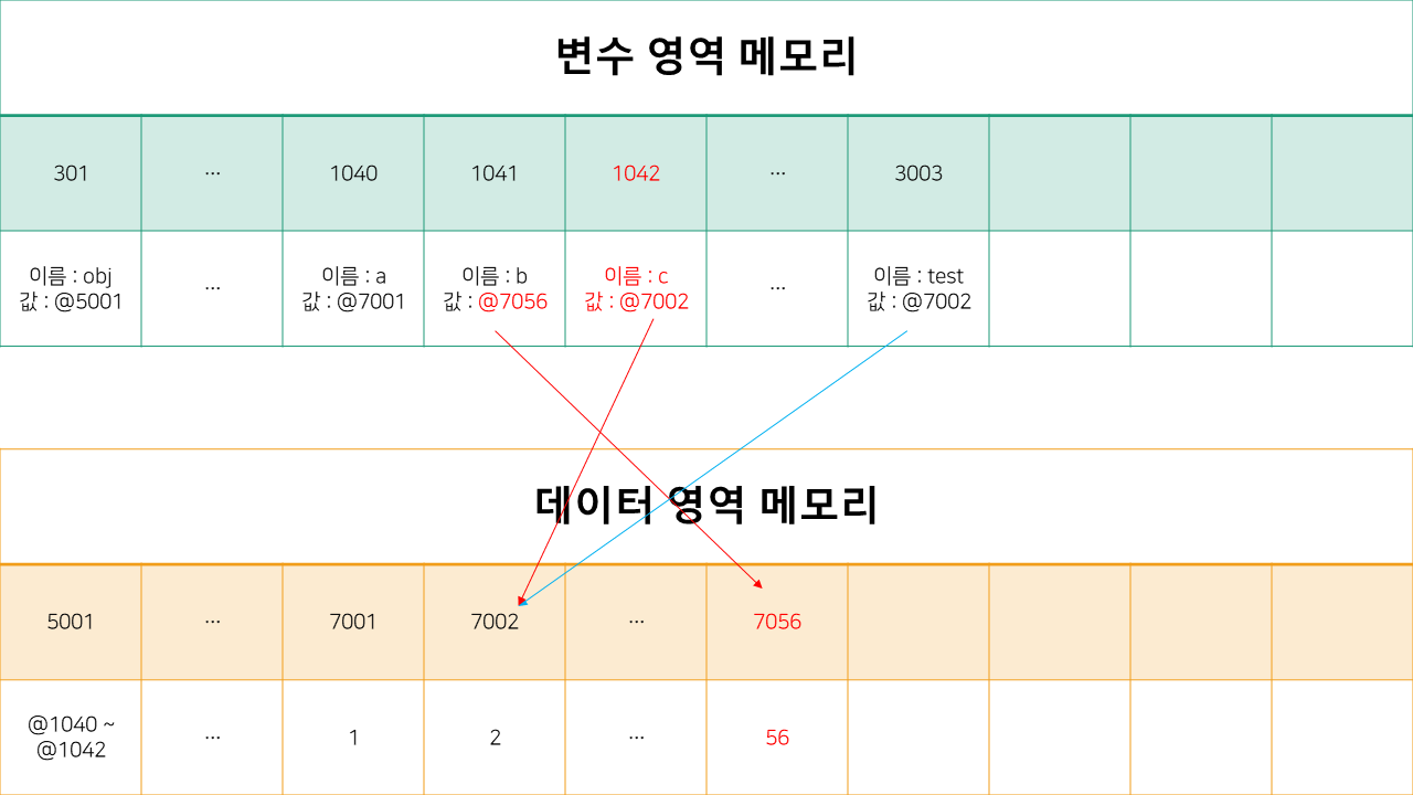 자바스크립트가 참조형 객체를 생성하고 추가 및 변경하는 방법 with 그림